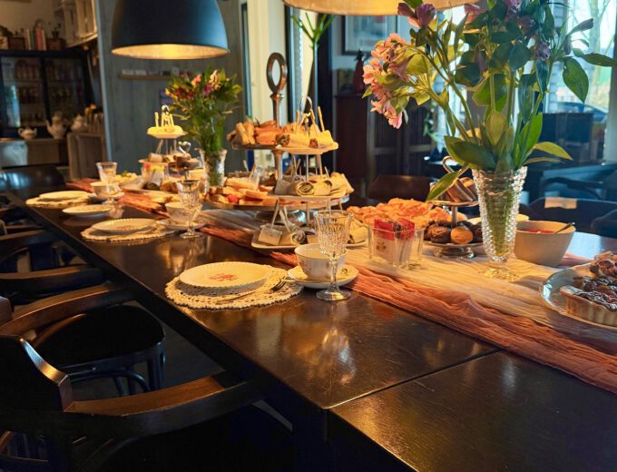 Geen stijve rituelen en geen opgeheven pinkjes bij Kamper Events. Nee hoor, bij onze DoItYourself High Tea draait alles om lachen, proeven en samen iets lekkers op tafel toveren. Maak je geen zorgen, wij hebben de materialen, ingrediënten en de recepten. Jullie hoeven het alleen maar te maken (en op te eten)!