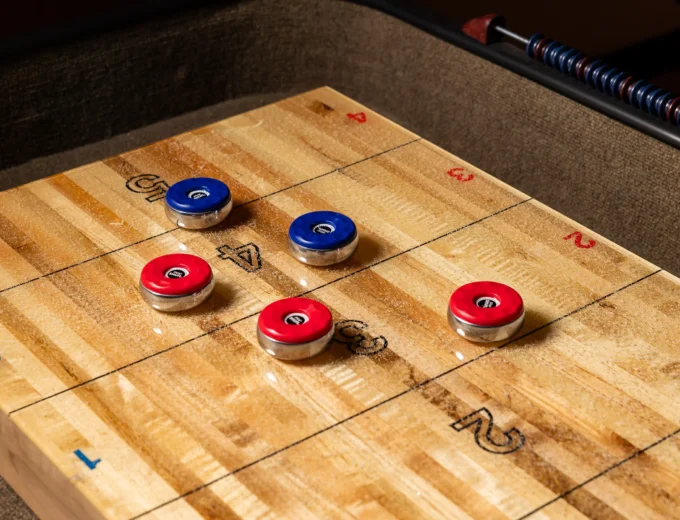 We spelen het oer-Hollandse sjoelen, maar ook het in Amerika breed bekende Shuffleboard wordt bespeeld om de punten. Aan de bar testen we wie de meest vaste hand heeft met een potje Jenga en als we dan toch aan de bar staan.. wie kan het vaakst een bierviltje wippen en deze met één hand weer opvangen?